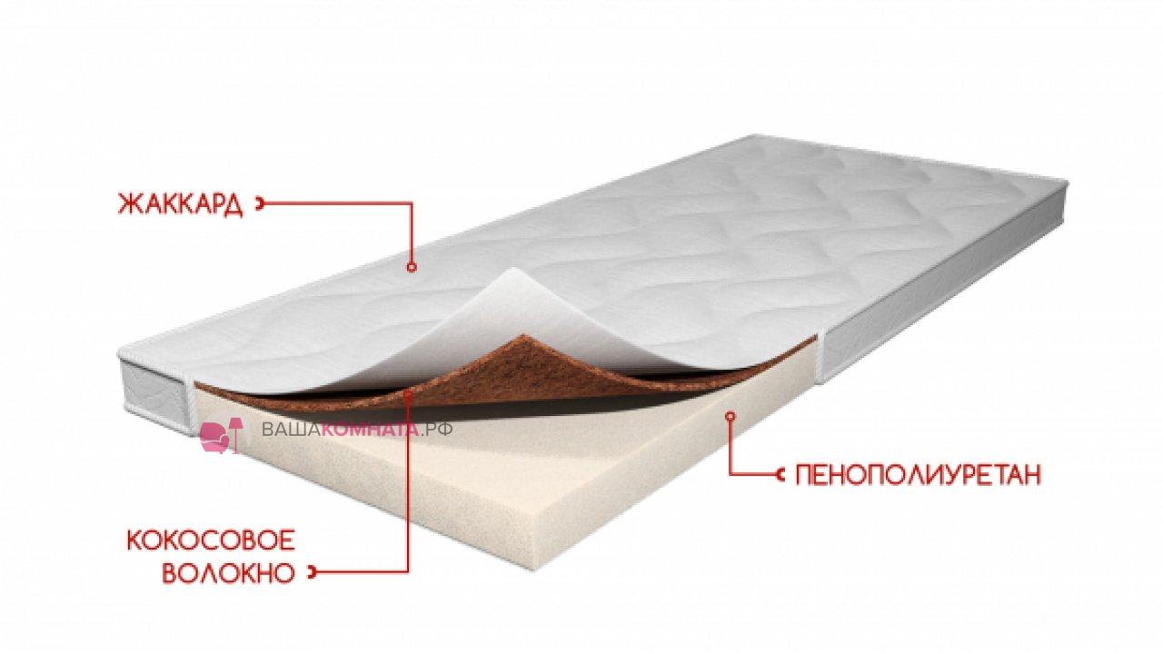 Состав: ткань жаккард стег. на 100 г синтепона, ППУ 9 см, кокосовая койра 1 см .