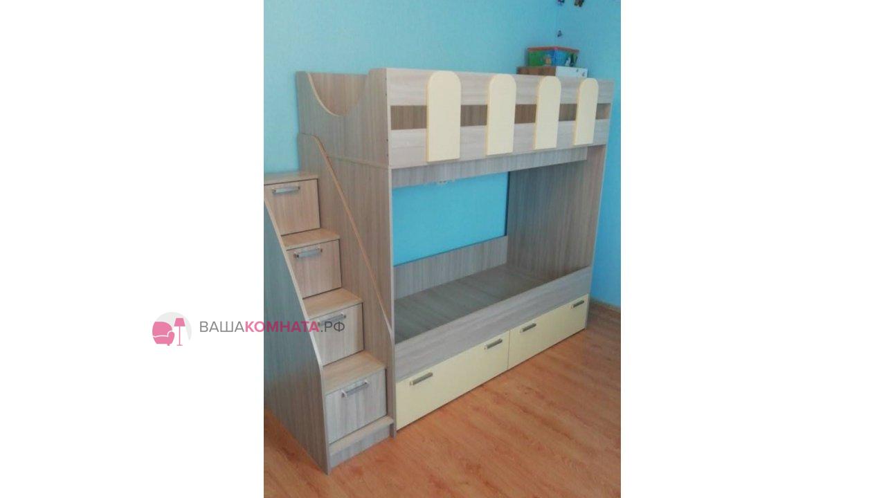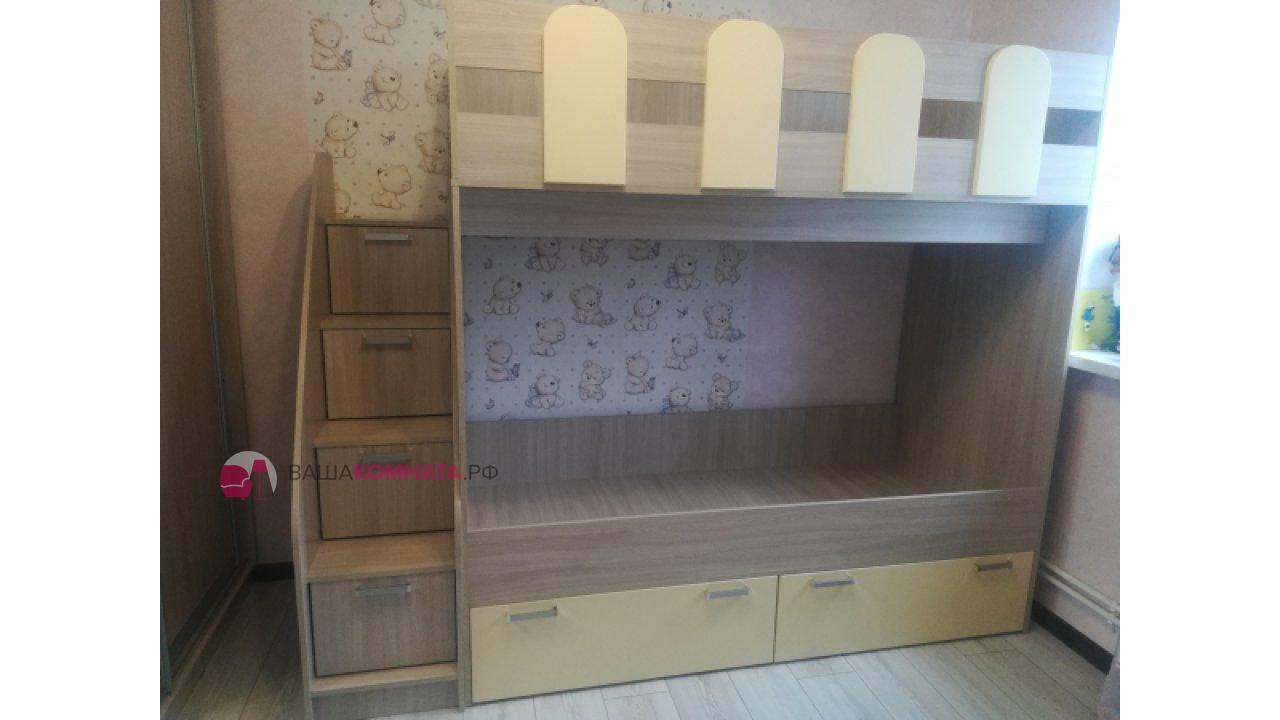 Кровать двухъярусная "Бемби-11" 0,8*1,8 м SL - Ваниль матовая / Ясень шимо светлый SL