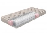 Инновационный уровень комфорта. Комфортный слой матраса представлен объемной стежкой (20 мм), состоящей из мягкой ортопены (10 мм) и наполнителя плотностью 300 г/м2. Стежка матраса имеет эксклюзивный "отрывной" рисунок. Такое сочетание обеспечивает базовый комфорт и мягкость матраса.