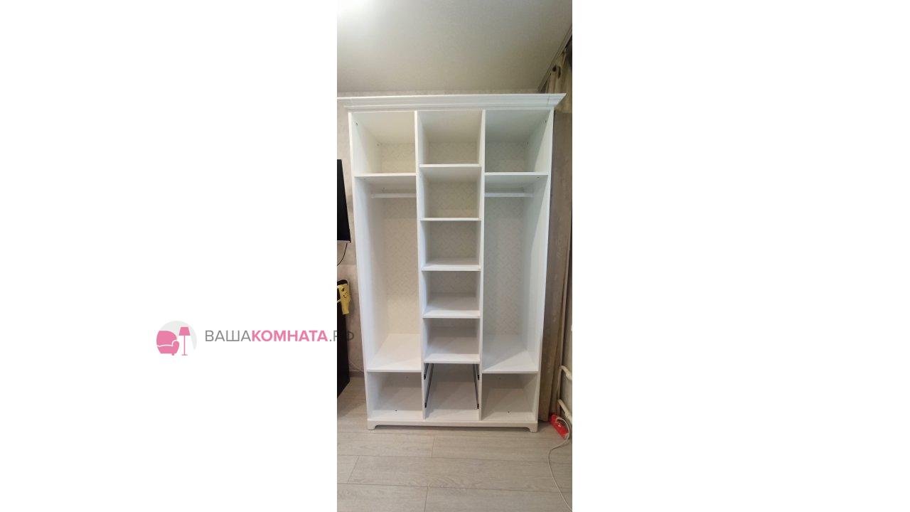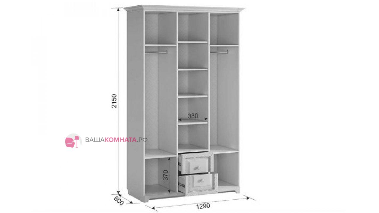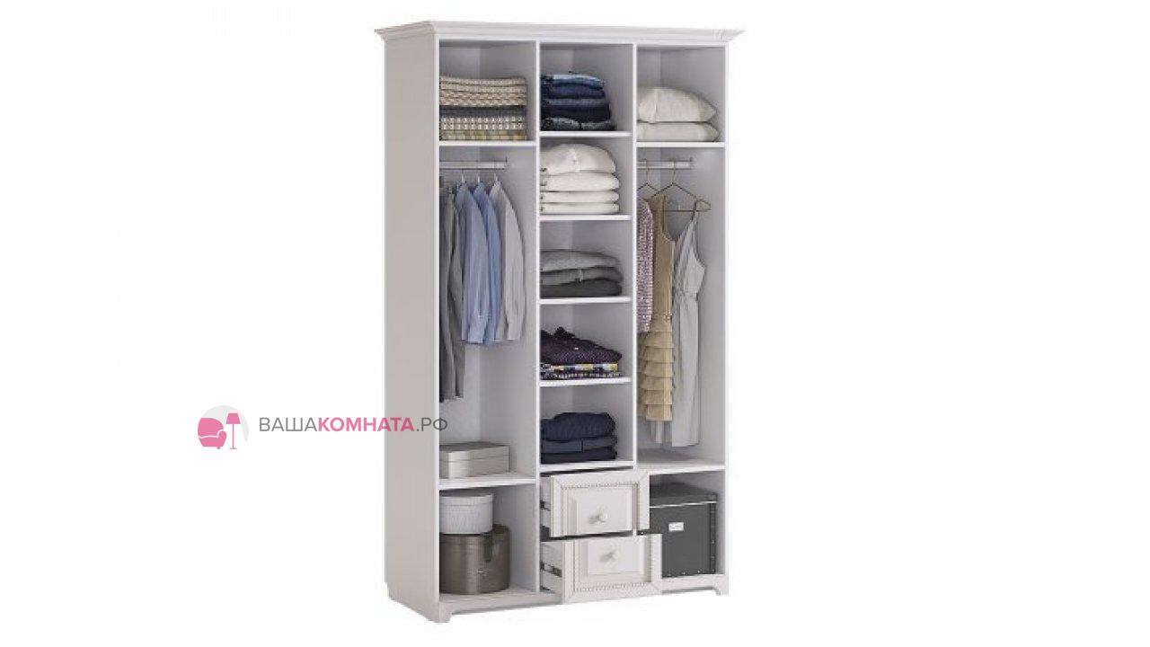 Состоит из: полок под вещи, штанги для одежды, выдвижных ящиков для мелких вещей.