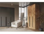 За двумя дверьми находится широкая штанга для вешалок-плечиков с верхней одеждой, деловыми костюмами, красивыми платьями и другой одеждой. Полки, скрытые за боковой дверью, пригодятся для сложенной одежды, постельного и нижнего белья, разнообразных аксессуаров и коробок с обувью.