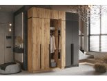 За двумя центральными дверьми находится широкая штанга для вешалок-плечиков с верхней одеждой, деловыми костюмами, красивыми платьями и другой одеждой. Полки, скрытые за боковыми дверьми, пригодятся для сложенной одежды, постельного и нижнего белья, разнообразных аксессуаров и коробок с обувью.