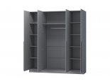 За двумя центральными дверьми находится широкая штанга для вешалок-плечиков с верхней одеждой, деловыми костюмами, красивыми платьями и другой одеждой. Полки, скрытые за боковыми дверьми, пригодятся для сложенной одежды, постельного и нижнего белья, разнообразных аксессуаров и коробок с обувью.