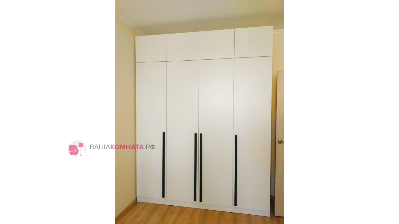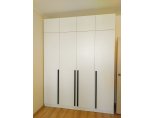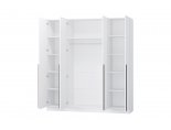 За двумя центральными дверьми находится широкая штанга для вешалок-плечиков с верхней одеждой, деловыми костюмами, красивыми платьями и другой одеждой. Полки, скрытые за боковыми дверьми, пригодятся для сложенной одежды, постельного и нижнего белья, разнообразных аксессуаров и коробок с обувью.