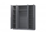 За двумя центральными дверьми находится широкая штанга для вешалок-плечиков с верхней одеждой, деловыми костюмами, красивыми платьями и другой одеждой. Полки, скрытые за боковыми дверьми, пригодятся для сложенной одежды, постельного и нижнего белья, разнообразных аксессуаров и коробок с обувью.