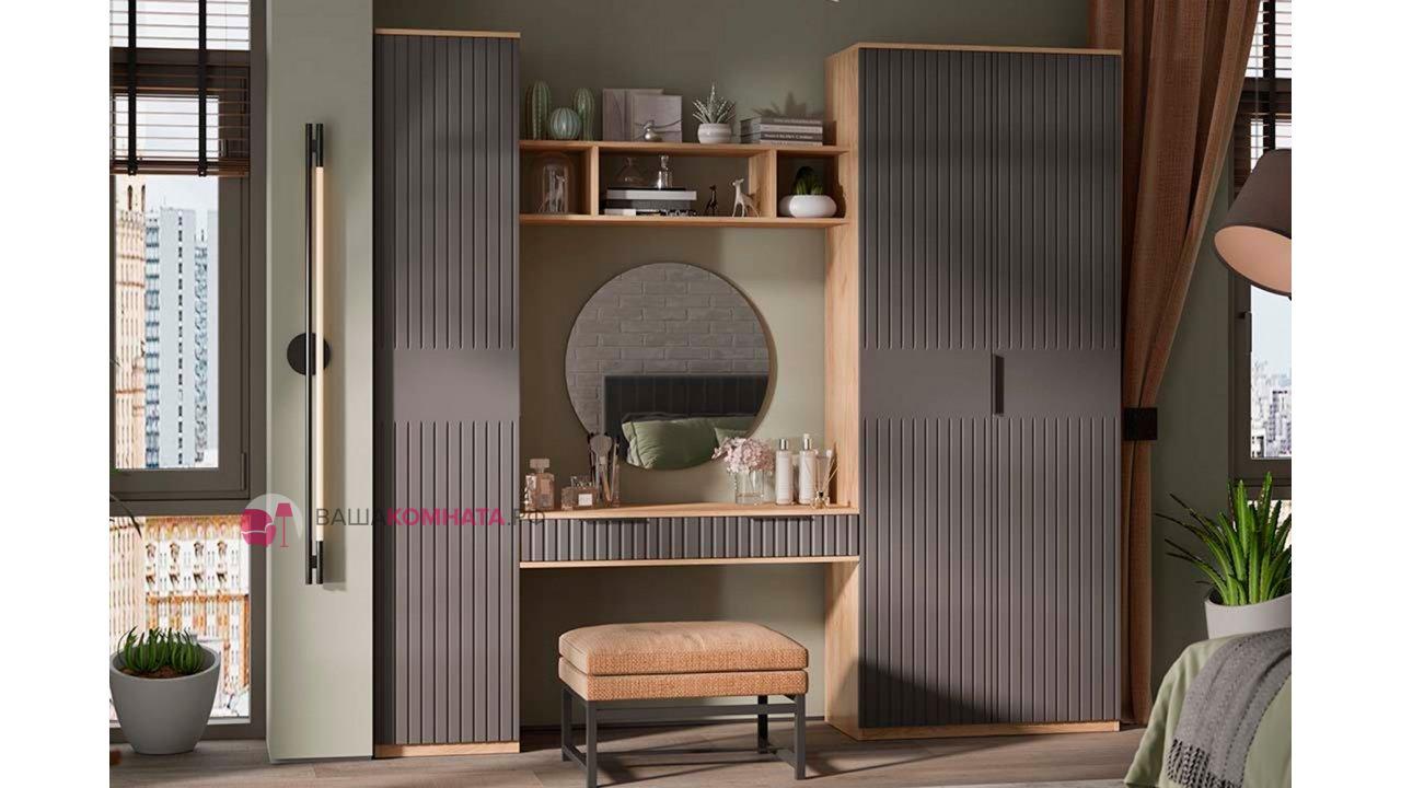 Подвесной туалетный стол «Хилтон» подходит к уже имеющимся модулям коллекции «Хилтон». Модель изготовлена из надёжных материалов: каркас выполнен из прочной ЛДСП, а фасады МДФ облицованы пленкой ПВХ и декорированы вертикальной фрезеровкой. Цветовая палитра каркаса и фасада отлично сочетается между собой, а металлические торцевые ручки, подобранные к оттенку фасадов, завершают образ модели и создают идеальный баланс стиля и качества.