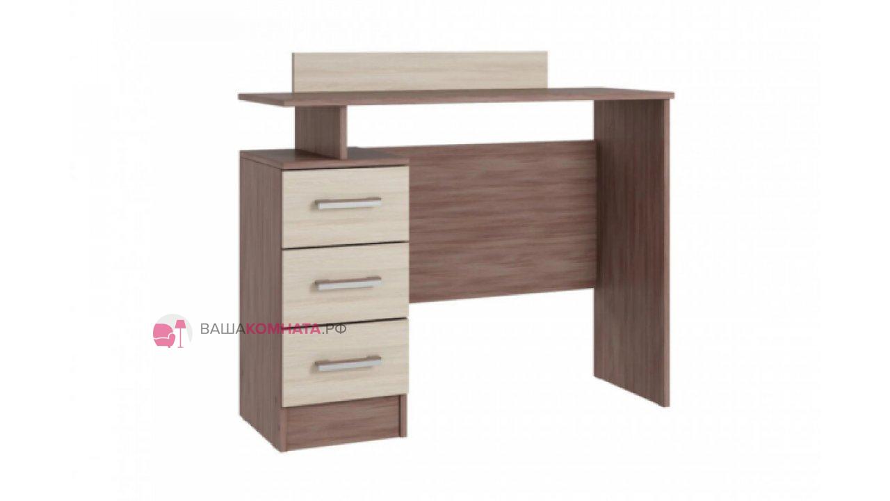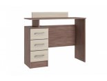 Стол Эко - модель с несколькими возможными вариантами применения. Стол оборудован тумбой с 3 выдвижными ящиками. Столешница довольно узкая, что позволяет использовать стол в качестве туалетного, но достаточно длинная, чтобы образовывать рабочее пространство для школьника или студента. Стол изготовлен из ЛДСП.