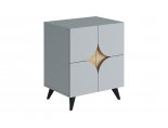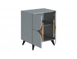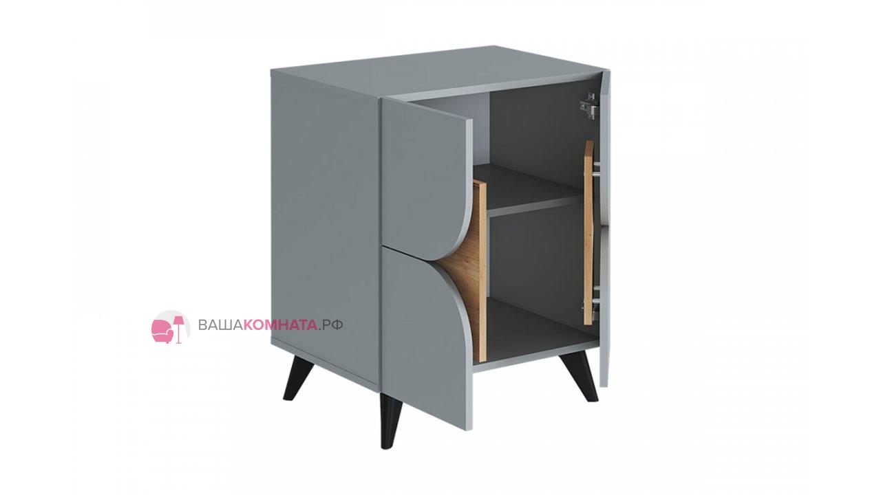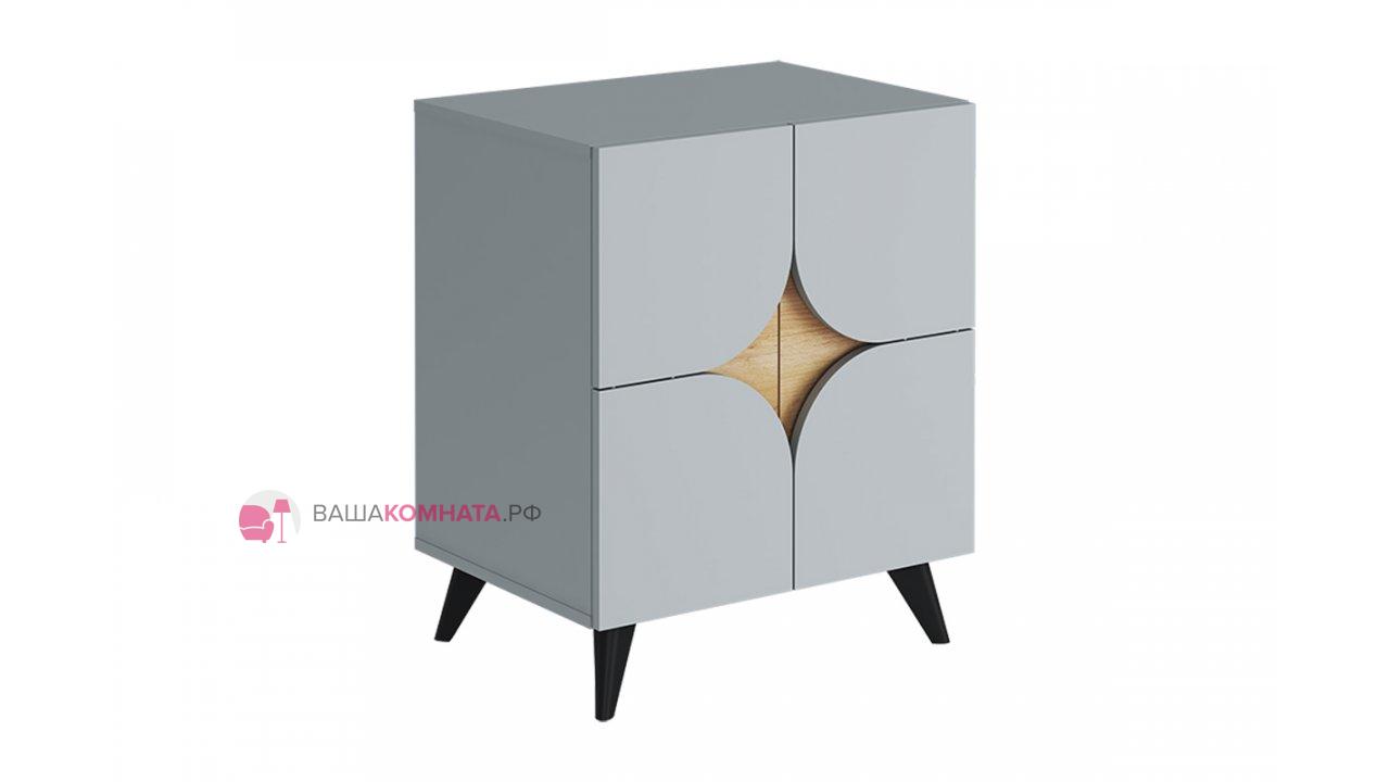Корпус и фасад изготавливаются из ЛДСП 16мм и закромлены кромкой ПВХ толщиной 0,4 мм. Фасады имеют фрезерованную часть и декоративную вставку из ЛДСП контрастного цвета. Открывать ее следует от руки за декоративный вырез фасада. Для поглощения звука закрывания фасада применяются «Амортизаторы (демпферы) силиконовые для фасада».