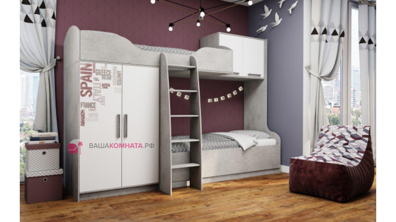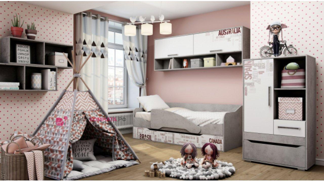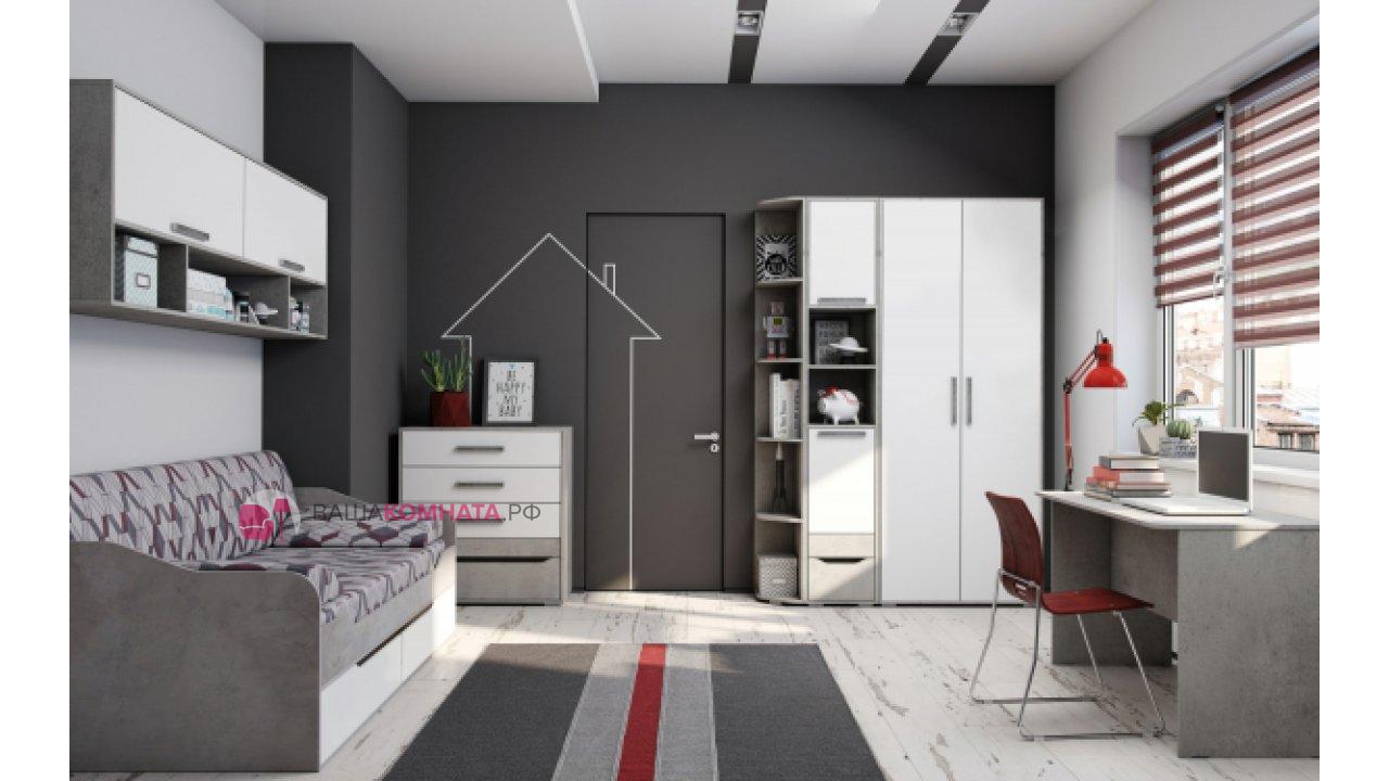 Детская "Грей" - это модульная система выдержанная в динамичном и современном стиле, который понравится детям и подросткам. Стильное сочетание корпуса в цвете «Цемент Светлый» и фасада Белого цвета. Два варианта исполнения с фотопечатью или без расширяют возможности по планированию интересного интерьера детской комнаты.